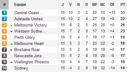 Pas de trêve hivernale en Australie (vous me direz, c’est l’été en ce moment) et une certitude, les Mariners dominent le tournoi. Leaders avec un point d’avance lors de notre dernier article sur la A-league, Central Coast a profité des quatre rencontres des fêtes de Noël pour creuser l’écart. Deux victoires, un nul et une défaite (concédée devant les Sky Blues de Sydney) permettent aux Mariners d’aborder la 16e journée de ce week-end avec quatre points d’avance sur leur premier poursuivant : Adelaïde.