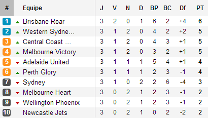 Derrière, signalons la première victoire de la saison pour Perth, fêtant comme il se doit l’arrivée de William Gallas alors que de leur côté, Wellington et Newcastle attendent encore une victoire en se quittant dos à dos lors du seul match sans but du week-end (les Jets attendant même leur premier but).