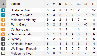 5e journée de A-league et personne ne semble parvenir à freiner les Roar. Seul les Wanderers tentent désormais de accrochés à leurs basques.
