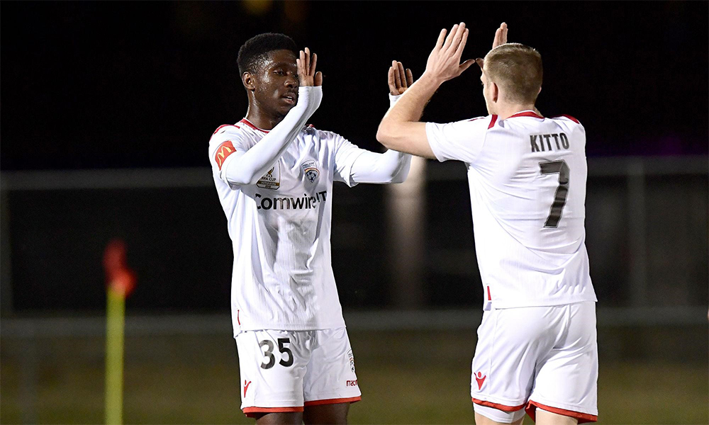 De leurs côtés, les pensionnaires de A-League n’ont fait aucun faux-pas à ce stade de la compétition pour ceux présents lors de cette première journée. Newcastle Jets, rejoint au score par une magnifique frappe du quarantenaire Daniel McBreen (16e), n’a pas eu de mal à valider son passage en quarts de finale sur une victoire par 5 buts à 1 dont une réalisation de leur nouvel homme fort, l’ancien international irlandais, Wes Hoolahan (38e). Pour Melbourne City et Adelaïde United, la donne fut la même. Confrontés au Marconi Stallions FC, les Citizens ont tenu tête à leur adversaire en scorant par deux fois avec Jamie Maclaren à la deuxième minute et Craig Noone avant le coup de sifflet de la mi-temps. En fin de rencontre, les ciels et blancs de Melbourne ont relâché la pression et ont dû aller chercher le ballon au fond de leurs filets sur une réalisation de Martin Fernandez (88e). Chez les Reds, Al Hassan Toure a fait coup sur coup. Buteur au tour précédent, le jeune attaquant de dix-neuf ans, tout juste promu en équipe première s’est permis d’écrire une nouvelle fois son nom au tableau des buteurs (9e). Tenants du titre, les Reds ont bataillé jusqu’à la quatre-vingt-quatrième minute avant de valider leur accession en quarts de finale. Un pénalty accordé et George Blackwood remportait son face-à-face sur Brandon Cuminao.