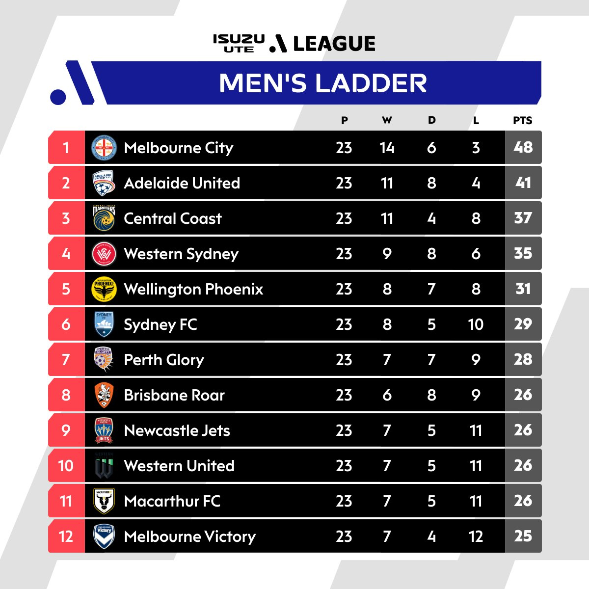 Melbourne City n’a pas cédé cette semaine alors qu’Adelaide United raté le coche face au Sydney FC et au milieu de tableau, les cinquième et sixième places seront l’objet d’une poursuite jusqu’à la fin de saison.