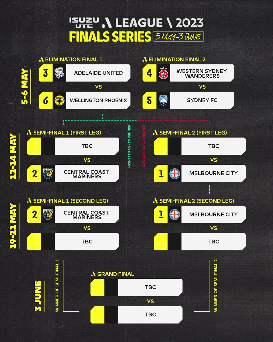 Western United et Brisbane Roar, vainqueur contre Melbourne Victory (1-0), seront exemptés de matchs à élimination pour la Coupe d’Australie au format particulier. Il n’y a pas de place pour douze, mais dix, afin de laisser deux tickets aux clubs des échelons inférieurs. Alors les quatre moins bien classés doivent jouer un match de qualification. Perth (neuvième) jouera Macarthur FC (douzième) quand Newcastle Jets (dixième) recevra Melbourne Victory (dixième). Et un format particulier jusqu’au bout car ces matchs sont programmés en juillet.
