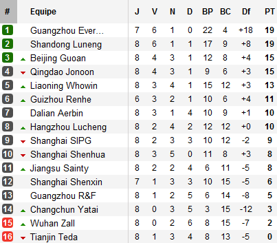 Car derrière, Shandong arrache un précieux succès à Shanghai pendant que le Beijing de Kanouté s’impose chez lui devant Changchun. La mauvaise opération est pour Qingdao qui tombe chez lui devant Hangzhou et voit ainsi revenir sur lui Liaoning et Guizhou, ces derniers ayant stoppé le retour du Dalian d’Hoarau et Keita.