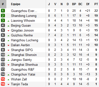 Avec un parcours digne du Bayern ou du Shakhtar, Guangzhou Evergrande n’en finit plus de dominer la Chinese Super League. Nouvelle victoire lors de la 9e journée après un troisième match consécutif sans encaisser de but, les hommes de Lippi restent solides leaders avec sept victoires et un nul en huit matchs disputés.