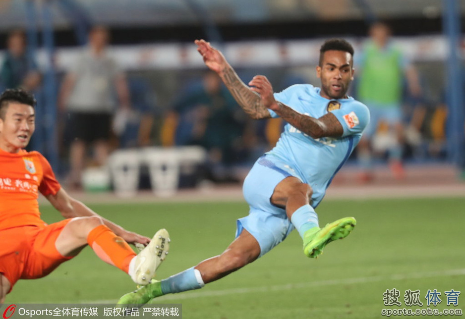 Nanjing, capitale de la province du Jiangsu recevait le dernier match de la 9ème journée, et quelle affiche, Jiangsu Suning (16ème) affrontait le Shandong Luneng (3ème). Le match allait tenir toute ses promesses. On retrouvait aussi du côté de Jiangsu le colombien Roger Martinez qui faisait son retour en tant que titulaire en pointe au côté de Teixeira. En début de rencontre les deux équipes étaient bien en place et il fallait un Golazoooooooooo de Diego Tardelli pour débloquer les compteurs (26’). Le brésilien combinait bien avec Graziano Pellè avant de déclencher un missile qui ne laissait aucune chance à Zhang Sipeng. Les Joueurs de Jinan rentraient aux vestiaires avec cet avantage d’une unité et ce malgré de nombreuses occasions pour les Sky Blues. A l’heure de jeu c’est Ramires qui sur un corner parfait, profitait d’une défense des Luneng aux abonnés absents pour crucifier Wang Dalei d’une tète imparable (58’) et remettre Jiangsu sur les bons rails. Dès lors, l’air saturé d’humidité allait devenir encore plus irrespirable, le KO guettait les deux formations. Le premier uppercut arrivait sur l’expulsion de Wang Tong pour une faute sur Roger Martinez (67’). Il était suivi à la 84ème par un crochet du colombien bien bloqué par Wang Dalei. Les hommes de Choi Yong-soo allaient achever les Luneng à l’ultime minute par Alex Teixeira qui se jetait comme un mort de faim pour pousser le cuir au fond des filets du portier de Shandong (90+3) et offrir la toute première victoire de la saison en championnat.