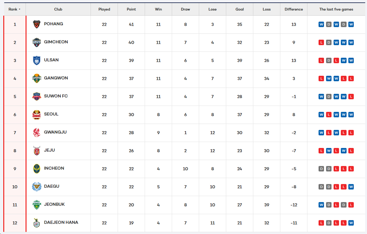 Pohang reprend les commandes, Jeonbuk enfin victorieux, Gangwon cale. Le récap de la vingt-deuxième journée de K League.