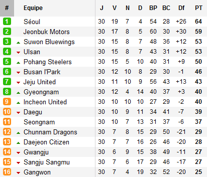 Les Roses accompagneront Jeju, Busan, Pohang, Ulsan, Suwon et les deux grands favoris, Jeonbuk et Seoul (ce dernier remportant la première phase) pendant qu’Incheon, Daegu, Seongnam, Chunnam, Daejeon, Gwangjun, Sangju et Gangwon lutteront pour éviter d’être l’un des deux premiers relégués de l’histoire de la K-league.