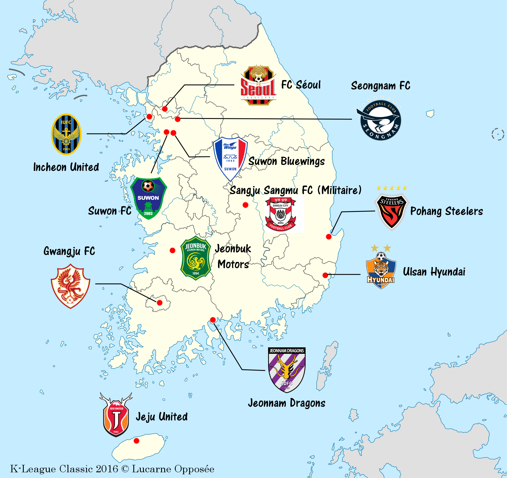 A quelques jours du début de la nouvelle saison de K-League, sa 34ème édition, voici un tour d'horizon des différentes équipes engagées. S'ajouteront à cela quelques points de règlement pour débuter, parce que ça ne fait jamais de mal, et pour finir les prédictions de la team LO pour cette saison.