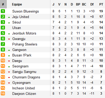 A noter enfin la première victoire de la saison pour Daejeon obtenue en milieu de semaine sur le terrain des Sangju Sangmu.