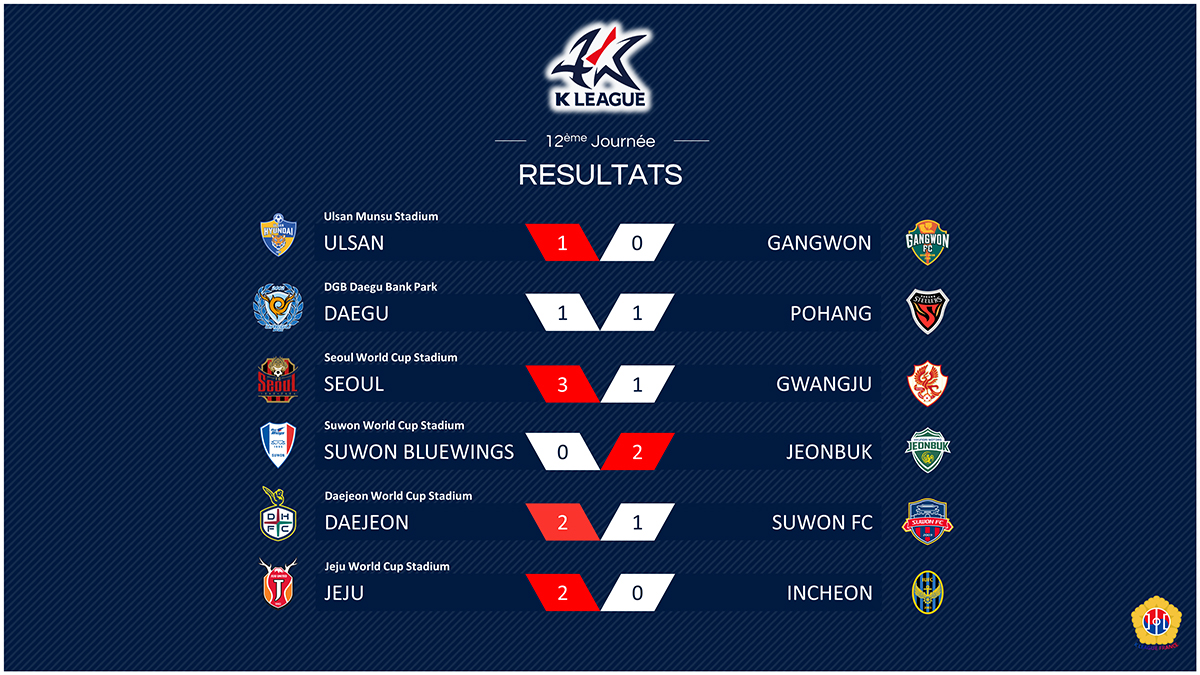 Retour sur la douzième journée de K League qui voit Ulsan poursuivre son cavalier seul et Seoul s’affirmer comme leader de la résistance.