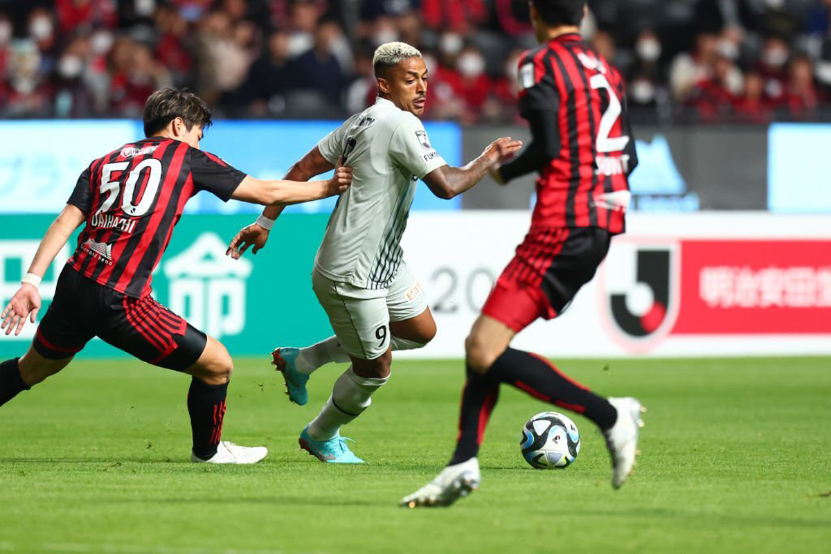 Le gros choc de cette journée était assurément celui livré entre Vissel Kobe, auteur d’un début de saison digne d’un champion en puissance, et Yokohama F.Marinos, champion en titre à l’appétit insatiable. Les deux équipes envoyaient au front leur onze du moment, ce qui promettait, sur le papier, à une belle confrontation. Dans un stade Noevir bien garni avec une ambiance surchauffée, les vingt-deux acteurs ont donné un très beau spectacle aux fans qui sont passés par tous les états. Les supporters grenats s’en donnaient tout d’abord à cœur joie après trente premières minutes de rêve : Koya Yuruki ouvrait le score en profitant d’une mésentente entre Jun Ichimori et le rookie Riku Yamane à la suite d’une passe longue de Yuki Honda. Ce même Yuruki, véritable poison durant toute la rencontre, centrait idéalement pour Yuya Osako qui battait Ichimori d’une tête piquée. Les vaches se relâchaient et Anderson Lopes redonnait l’espoir aux mouettes. Mizunuma le lançait plein centre au milieu d’une défense bien passive pour un face-à-face remporté haut la main face à Daiya Maekawa. Juste avant le retour aux vestiaires, Kota Watanabe, jeune joueur de l’ombre du milieu tricolor et pur produit de Tokyo Verdy, nettoyait la lucarne de Maekawa d’un magnifique enroulé. À la mi-temps, tout restait à faire et les deux équipes remettaient le couvert en seconde période. Dès l’entame, la défense visiteuse s’amusait à se faire des passes jusqu’à ce que Yoshinori Muto intercepte et serve Osako seul pour le doublé. Vraiment ? Le VAR s’en mêlait et un hors-jeu était sorti du chapeau pour un semi-bras trop avancé. De quoi nourrir des regrets ? Oui, car Anderson Lopes inscrivait son septième but de la saison d’une tête imparable à dix minutes du coup de sifflet final. Dans la foulée, Muto célébrait déjà mais sa tête lobée finissait sur la barre (2-3). Excellente opération pour les champions sortants qui reviennent à deux points de la tête du classement.
