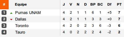 En cas de succès, Dallas pouvait devenir le premier qualifié pour les huitièmes. Occasion manquée. Les texans s'inclinent chez eux devant des Pumas enfin lancés qui en profitent pour prendre la tête du groupe. De son côté, Toronto vient se mêler à la lutte en s'imposant devant Tauro. La qualification se jouera entre ces trois équipes.