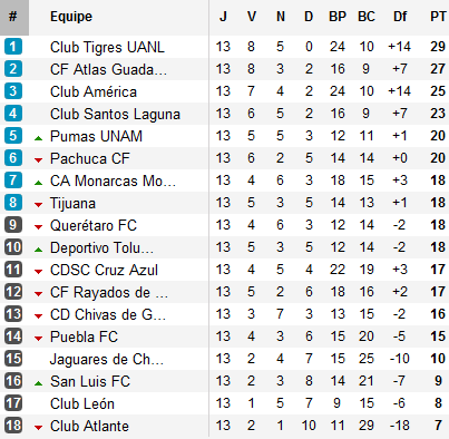 A quatre journées de la fin de la phase régulière, Tigres continuent de dominer le tournoi. Derrière, Atlas, América et Santos Laguna s’accrochent tant qu’ils peuvent.