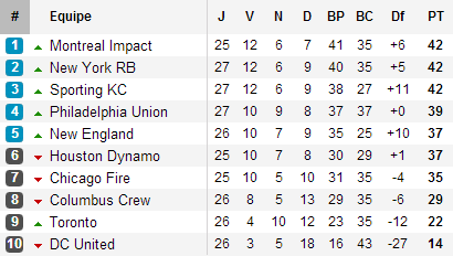 Semaine animée à l’Est avec l’affaire Petke – Henry. Un jeudi d’entraînement animé, une altercation entre le coach des Red Bulls et son capitaine, les deux hommes séparés par les autres membres du staff, grosse tension à New York. Après trois matchs sans victoire, les Red Bulls se sont fait rejoindre par la meute et semblent ainsi au bord de la crise de nerfs. Si on ne saura probablement jamais ce qu’il s’est passé ce jeudi 29 août 2013, la principale conséquence aura été la mise sur le banc de Thierry Henry (muet depuis 5 matchs) à l’heure d’accueillir la plus mauvaise équipe de la MLS 2013 : DC United. Tout devrait s’apaiser rapidement : victoire étriquée mais victoire, New York revient en tête de la conférence. Car pendant ce temps, Montréal reste muet face à Philadelphie et conserve sa première place. Avec l’Impact et les Red Bulls, une troisième équipe : le Sporting Kansas. La meilleure équipe de l’Est l’an passé revient au contact en s’imposant sur le fil face aux Rapids. Reste que tout est incroyablement ouvert, ces trois équipes n’ayant que sept points d’avance sur le septième, Chicago, qui, comme Montréal, compte deux matchs de moins que New York et le Sporting.