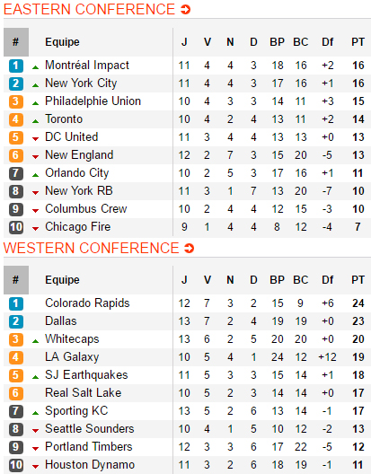 Mais la principale menace reste Los Angeles. Depuis la défaite concédée début mars face à Colorado, le Galaxy a trouvé sa vitesse de croisière et fond sur les leaders. New England balayé par le trio Keane – Gio – Gerrard, le Sporting Kansas parvient à sauver un point chez lui, voilà la bande à Bruce Arena revenu à cinq points de la tête avec deux matchs de plus à disputer, doublant au passage un Real Salt Lake dans le dur mais qui peut lui aussi compter sur deux matchs de retard pour recoller sur la tête. Derrière, la situation du duo Sounders – Timbers se complique, d’autant que Houston semble se réveiller quelque peu en décrochant deux succès sur ses trois derniers matchs après n’avoir connu qu’une seule victoire lors des huit journées précédentes.