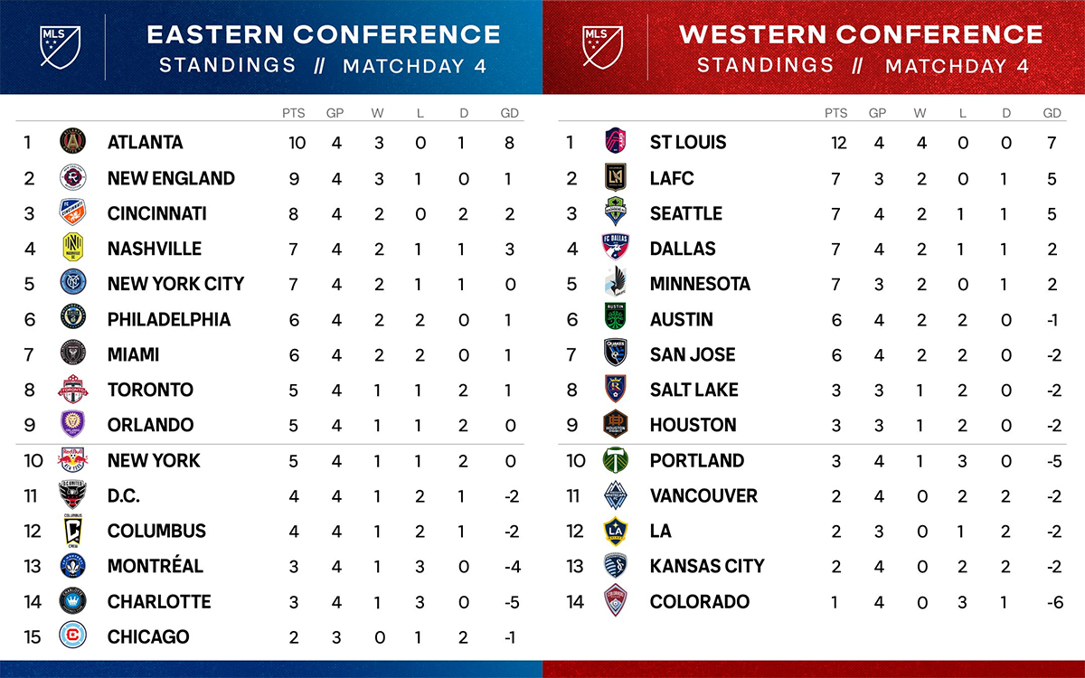 Pendant qu’Atlanta continue de rouler sur ses adversaires, St. Louis City ne cesse de surprendre. Et les premiers écarts se creusent.