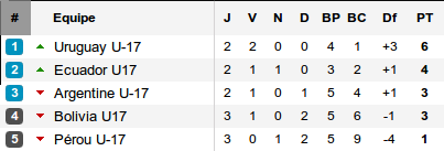 Révélation de la Coupe du Monde sénior, finaliste du Sudamericano des moins de 20 ans, l'Uruguay poursuit son incroyable série en s'imposant comme le patron du groupe A. Derrière l'Argentine subit alors que dans le groupe B, le Brésil n'est pas plus maître.