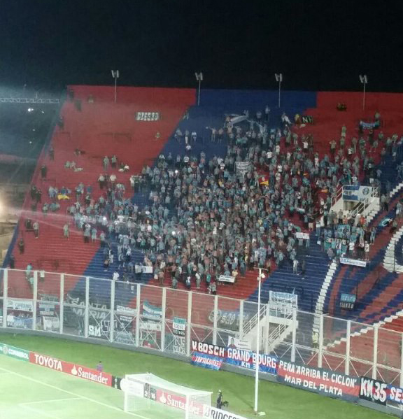Quelques minutes avant la rencontre la Butteler, Barra-Brava de San Lorenzo, fait son entrée accompagnée d'une multitude de drapeaux français en hommage aux couleurs du club mais aussi de parapluies et tambours alors que toute la popular reprend « Soy de Boedo » (Je suis de Boedo en référence à son histoire et son stade) dans une énorme ambiance. Le match peut démarrer.