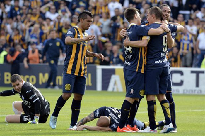 Cette défaite de Boca réveille les espoirs de Central. El equipo de Coudet (lire el equipo de Coudet) accueillait Argentinos au Gigante et s’en est remis à son duo Ruben – Larrondo pour ne faire qu’une bouchée du Bichos avec notamment un génial Giovanni Lo Celso, gamin de 19 ans, à la baguette. Celui qui devrait être le futur remplaçant de Franco Cervi dans l’entrejeu Canallas a offert deux amours de ballon par-dessus la défense d’Argentinos pour donner les deux buts du match à des Canallas qui ont tranquillement dominé un Argentinos d’abord privé de Gabbarini, blessé sur le duel avec Pinola sur le premier but et terminé la partie à neuf, Basualdo et Torrén étant exclus. Cette belle victoire permet aux hommes d’el Chacho de prendre la seconde place, directement qualificative pour la prochaine Libertadores mais surtout ramène les Canallas à cinq points de Boca. De quoi croire à un miracle. Car si Boca venait à ne pas s’imposer chez lui face à Tigre lors de la 29e journée, l’ultime rendez-vous de la saison, prévu au Gigante verra Central accueillir Boca. On en viendrait presque à espérer une finale dans un des stades les plus impressionnants du pays.