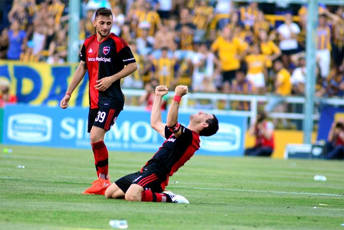 « Je l’ai plus célébré que celui face au Mexique, » ou encore « j’ai accompli un rêve. » Tels sont les propos tenus par Maxi Rodríguez depuis sa folle soirée de dimanche. Car c’était sans aucun doute possible le grand rendez-vous du week-end : tout Rosario s’était arrêté de vivre pour se focaliser sur le Gigante de Arroyito et son recibimiento de folie pure. Deuxième à trois points du leader Estudiantes, Newell’s espérait mettre fin à huit années de disette pour affirmer définitivement son retour au premier plan. Seul souci pour les Leprosos, les Canallas de Central entendaient bien profiter de cette folie furieuse pour recoller au général après un début de saison mi-figue mi-raisin. Alors les hommes du Chacho Coudet ont totalement dominé le premier acte, ayant le monopole du ballon et générant bien des dangers sur les cages de celui qui allait devenir l’homme du match, Luciano Pocrnjic. Deux fois devant Washington Camacho, une autre sous forme de double parade devant Ruben et Camacho, Pocrnjic ne laissait rien passer. Face à cela, Newell’s se contentait de plier, sans jamais rompre. Le second acte ne voyait rien changer. Central appuyait, Newell’s tentait de respirer mais résistait cependant bien mieux, les Canallas peinant à se montrer véritablement dangereux malgré la forte pression imposée à leurs adversaires. On pensait alors filer vers un match nul sans but, résultat logique vu le second acte. Mais l’impensable se produisait. Un dernier corner de Maxi Rodríguez, un ballon qui revient sur le pied droit de l’ailier Leproso, une balle parfaitement enroulée en première intention. « Plus célébré que le but face au Mexique, » Maxi partait dans une course folle. On jouait la 93e minute, Newell’s venait de mettre fin à 8 années de disette et surtout s’assurait de rester seul au contact du leader.