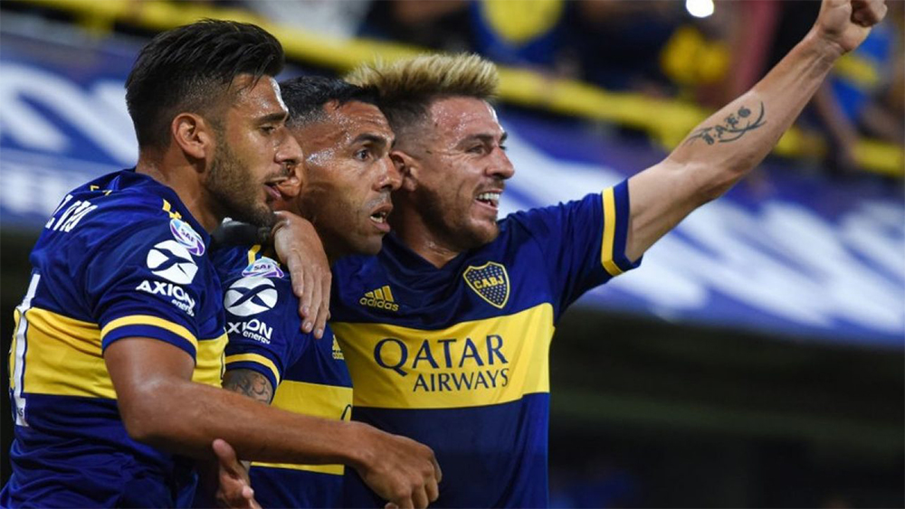La mission du week-end était bien plus abordable du côté de Boca. Le second accueillait dans l’enfer de la Bombonera, la pire équipe de la saison 2019-2020, Godoy Cruz. Sur le papier, c’était déjà déséquilibré. Mais c’était sans évoquer la dynamique actuelle des deux équipes. Avant de battre Huracán le week-end dernier, les Mendocinos avaient perdu cinq de leurs six derniers matchs. Mais surtout, Boca est dans une de ses plus belles formes sur les cinq dernières années, et déploie un jeu plus que séduisant, au-delà de gagner. Dans les travées, les Bosteros chantent le classique : « Para ser campeón, hoy hay que ganar ». On n’aurait pas mieux résumé. La veille du match de River, Boca n’a pas le choix : il doit gagner pour recoller virtuellement et espérer le faux-pas de l’ennemi. Une contre-performance xeneize rendrait l’écart presque irrattrapable. Pour maintenir la flamme de l’espoir, Miguel Ángel Russo aligne son onze habituel (à l’exception de Junior Alonso à la place de Lisandro López) et habitué à performer. Le Xeneize s’apprêtait à rouler sur son adversaire du jour et il allait utiliser les mêmes ingrédients qu’à son habitude. Et c’est Sebastián Villa qui tentait le premier de s’en charger. Survolté sur son aile gauche, il donnait du fil à retordre à toute la défense de Godoy Cruz. Entre autres, un de ses déboulés, ponctué d’un petit pont, se terminait sur une frappe peu dangereuse, bien captée par Rodrigo Rey. Signe qu’il était dans un grand jour, à la retombée d’un dégagement d’Andrada, le Colombien a régalé l’arène d’un contrôle en extension flirtant avec la ligne de touche qui a abouti à une occasion pour Boca. Contrairement à ce qu’on aurait pensé, c’est le jusque-là discret Carlitos Tévez qui trouvait la faille. Ce n’était alors qu’une question de minutes. À vingt mètres, sa frappe puissante était mal négociée par Rey et atterrissait dans les filets jaunes. Peu avant la mi-temps, Salvio aurait pu donner un avantage plus confortable à son équipe s’il avait su mieux conclure un contre rapide rondement mené par Franco Soldano. La seconde période donnait lieu à la première incursion de Godoy Cruz dans la surface boquense. Parti dans la profondeur, Merentiel dribblait tant bien que mal Andrada mais ne pouvait redresser le ballon vers le cadre. Mieux rentré dans ce second acte, la Tomba allait définitivement enterrer ses chances. Après une vilaine semelle sur la cheville de Tévez, l’arbitre montrait le rouge à Marcelo Herrera et lui indiquait le chemin des vestiaires. À onze contre dix, il n’en fallait pas plus à Boca pour dérouler pendant les vingt minutes restantes. Très actif dans cette fin de match, Toto Salvio allait doublement briller. D’abord, d’un vif enchainement crochet-zurdazo, il envoyait le cuir au fond avec force. Ensuite, en terminant parfaitement un cafouillage dans la défense paniquée de Godoy Cruz d’une frappe déviée, imparable pour Rey. La messe était dite. Boca a fait le boulot, avec sérieux et panache. La formation de Mendoza n’a jamais existé dans ce duel où elle n’avait pas les armes suffisantes pour rivaliser. Avec un calendrier bien plus abordable (Colón puis Gimnasia), Boca sera très certainement candidat à la victoire finale jusqu’à la dernière journée. Le titre sera difficile à atteindre au vu de la forme de River, mais l’important n’est pas là. Le jeu que Russo a installé à Boca porte déjà ses fruits et portera surement le club pour les prochaines saisons. Les hinchas xeneizes s’en réjouissent déjà.