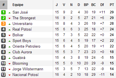 Mais en match (très) avancé de la 17e journée disputé ce jeudi, The Strongest est tombé face au Nacional. Conséquence, San José et Universitario, avec leur match de retard, disposent désormais d’un joker. Reste que le joker du club d’Oruro n’est pas offert : ce week-end, le Santo accueille Bolivar, cinquième à cinq points qui jouera sa dernière chance d’espoir pour le titre. Le sprint final ne fait que débuter, il va être une nouvelle fois passionnant.