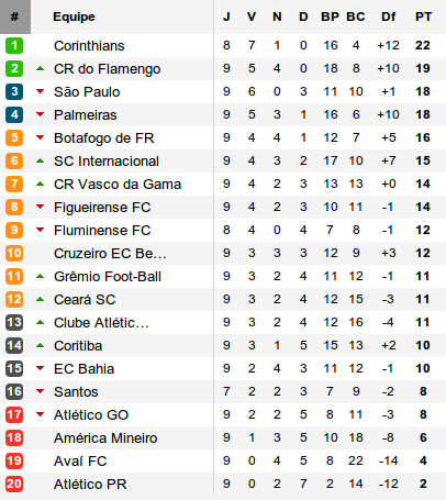 Si la plupart des favoris répondent présents, trois manquent à l'appel. Grêmio et Cruzeiro semblent scotchés au milieu de tableau et peinent à décoller alors que Santos, privé de ses pépites retenues par la Copa America, inquiète dans la perspective de ne pas les voir revenir. La vie sans Neymar et Ganso semble difficile pour le vainqueur de la Libertadores 2011, actuel premier non relégable (avec cependant 2 matchs de retard).