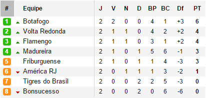 En ouverture de la deuxième journée du championnat carioca, Botafogo a disposé de la Portuguesa sur le score de 2-1. Comme lors du premier match, c'est une recrue qui s'est montrée décisive. L'argentin et international bolivien, Damian Lizio, entré en cours de jeu, a inscrit le but de la victoire à la 85ème minute. Fluminense s'est parfaitement repris de sa défaite lors de la première journée avec une large victoire 4-0 face au Bonsucesso. Gustavo Scarpa, Cicero et Fred, auteur d'un doublé, ont été les buteurs de la partie. Ce doublé permet à Fred d'égaler Telê Santana avec 164 buts (en 269 matchs) pour Fluminense. La prochaine cible, Hercules, troisième meilleur buteur du Fluminense, est à seulement un but alors que le leader Waldo semble intouchable : 319 buts pour Fluminense entre 1954 et 1961. Cette large victoire du Fluminense motivera peut-être les supporteurs à aller au stade puisque seulement 1 116 personnes étaient présentes…