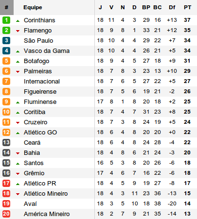 Le chassé-croisé se poursuit entre Flamengo et les Corinthians. Avec deux rencontres sur un week-end pour chaque les dégâts sont important et aucun leader n'a semblé en mesure d'assurer le maximum de point.