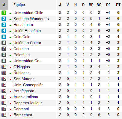 Deux journées se sont déjà déroulées et si Colo-Colo a sauvé l’essentiel en ramenant le nul de San Marcos avant de s’imposer chez lui devant Iquique, la ‘U’, les Santiago Wanderers, Huachipato et Unión Española ont réalisé le sans-faute. Peu d’enseignements à tirer après deux journées si ce n’est le clin d’œil du destin qui aura vu Milosevic punir la Católica, lors du choc à Santa Laura, qui aura permis aux Hispanos de faire tomber pour la première fois de la saison les Cruzados de Falcioni. Pas sûr que les hinchas de la Católica aient apprécié.