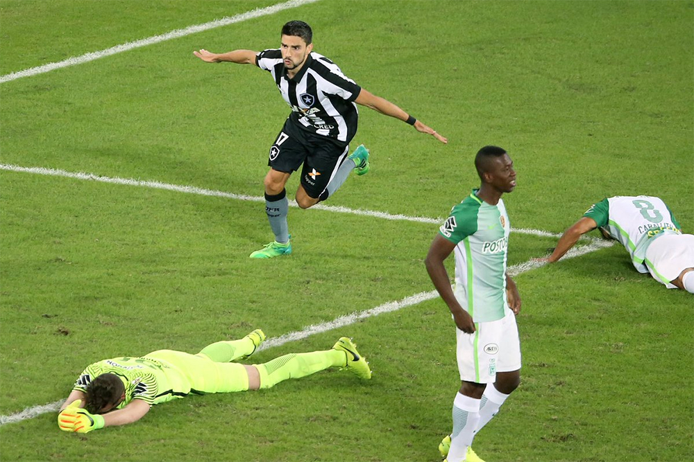 Malheureusement pour les Pinchas, Botafogo a assuré son passage en huitièmes. Pour cela, l’étoile solitaire s’est payé le luxe d’éliminer le champion sortant. D’entrée de match, la rencontre était animée, l’Atlético Nacional forcé de s’imposer ne pouvant pas se permettre le luxe d’attendre tranquillement. Cette volonté offensive des Colombiens, qui malheureusement n’allait pas se traduire en occasions franches, ouvrait des espaces que les Brésiliens exploitaient à merveille, à l’image de cette énorme occasion de Roger qui trouvait le poteau d’Armani dès la deuxième minute. Les minutes défilaient et le scénario restait invariable, l’Atlético Nacional pesait mais n’était pas dangereux, incapable le plus souvent de cadrer. Alors, au retour des vestiaires, Reinaldo Rueda voulait que sa formation pousse davantage. Malheureusement pour elle, dès la cinquième minute, Rodrigo Lindoso servait plein axe Rodrigo Pimpão qui croisait et trouvait le petit filet. Mené 1-0, l’Atlético Nacional était KO. Ayant perdu son jeu, le champion sortant peinait à se procurer de véritables situations d’espérer et s’exposait plus qu’il ne menaçait, les Rodrigo Pimpão et autres Víctor Luis étant bien plus tranchants. C’est ainsi que Botafogo s’assure une place en huitième et crée la première sensation de l’édition 2017, l’élimination du champion sortant. Un champion qui devra s’imposer face à Barcelona lors de l’ultime journée et prier pour qu’Estudiantes s’incline chez lui s’il veut poursuivre une aventure continentale. Autant dire que même là l’espoir est mince.