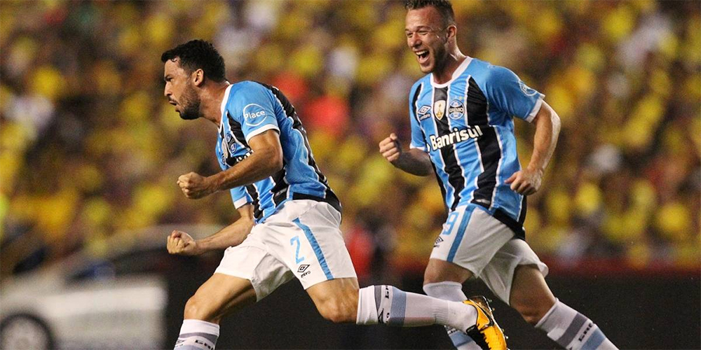 Autre Monumental, autre ambiance bouillante. À Guayaquil, Barcelona accueillait Grêmio et espérait faire un grand pas vers une nouvelle finale depuis celle de 1998 (déjà face à un Brésilien). Si les Toreros d’Almada, privés d’un de leurs hommes clés, Jonathan Álvez, espéraient conserver leurs chances en vue du retour, l’affaire est bien mal partie. Après avoir éliminé trois Brésiliens, Barcelona est tombé sur un os nommé Grêmio, bien plus efficace et réaliste. Il ne fallait que sept minutes et une frappe de Luan détournée par un défenseur pour voir le Tricolor Gaúcho prendre les devants dans cette deuxième demi-finale. Barcelona marquait le coup mais cherchait à bousculer l’arrière garde des visiteurs en appuyant notamment sur les côtés. Mais les Equatoriens allaient de nouveau se faire piéger. Banguera sous-estimait les capacités de tireur de coup franc d’Edilson, son mini-mur (aussi ridicule que mal placé) s’effritait sur la frappe du Brésilien qui filait droit dans les buts, on jouait depuis 20 minutes, Grêmio menait 2-0 et semblait avoir tué le match. Les visiteurs se repliaient alors, attendant tranquillement de voir les locaux se casser les dents sur leur défense. Marcelo Grohe sortait un arrêt exceptionnel en tout début de second acte devant Nahuelpán, dernier coup de massue car dans la foulée, Luan pliait l’affaire, seul dans la surface. À 3-0, Grêmio pouvait alors gérer, les hommes de Renato Gaúcho allaient même montrer enfin quelques belles séquences de possession et de fluidité. Ils n’ont jamais été aussi près de la finale.