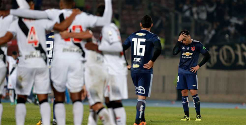 Lendemains difficiles pour le groupe et les dirigeants de l’Universidad de Chile qui ont trouvé les murs du Centro Deportivo Azul, le centre d’entraînement, bardés de tags aux mots plus ou moins doux à leur encontre. Il faut dire que la soirée et la nuit ont été des plus tristes pour le peuple azul. Avec son destin en main, la U accueillait un Vasco qui restait sur trois déplacements sans but marqué et deux 0-4 reçus dans cet intervalle. De quoi être confiant d’autant que même une défaite, sur le score de 1-0, permettait de rester en position de qualifié pour la Sudamericana. Aussi, quand Bruno Silva a ouvert le score pour les visiteurs au quart d’heure, il n’y avait pas de véritable raison de céder à la panique. Certes les contres des Brésiliens étaient systématiquement dangereux, les joueurs du Vasco se retrouvant souvent en un contre un face à une défense qui reculait et les situations en faveur des locaux bien trop timides, la meilleure occasion étant une volée lointaine de Vaz sortie par Martín Silva. Mais pas de quoi paniquer, surtout qu’au fil des minutes, la percussion de Soteldo permettait de générer du danger. Le chronomètre tournait, le score n’évoluait pas, les situations se réduisaient, tout semblait bon. Jusqu’à l’accident. Un long dégagement de Martín Silva, un Gonzalo Jara qui se troue sur la récupération du ballon et le ballon file dans son dos où se trouve Yago Pikachu. Le Brésilien peut tranquillement devancer Fernando de Paul, 2-0 Vasco au Nacional, on joue alors la 82e minute. Et la U est tombée. Incapable de se montrer dangereuse par la suite, elle n’a dû se rendre compte qu’elle est sortie de toute compétition continentale au terme de l’un des pires semestres de son histoire.