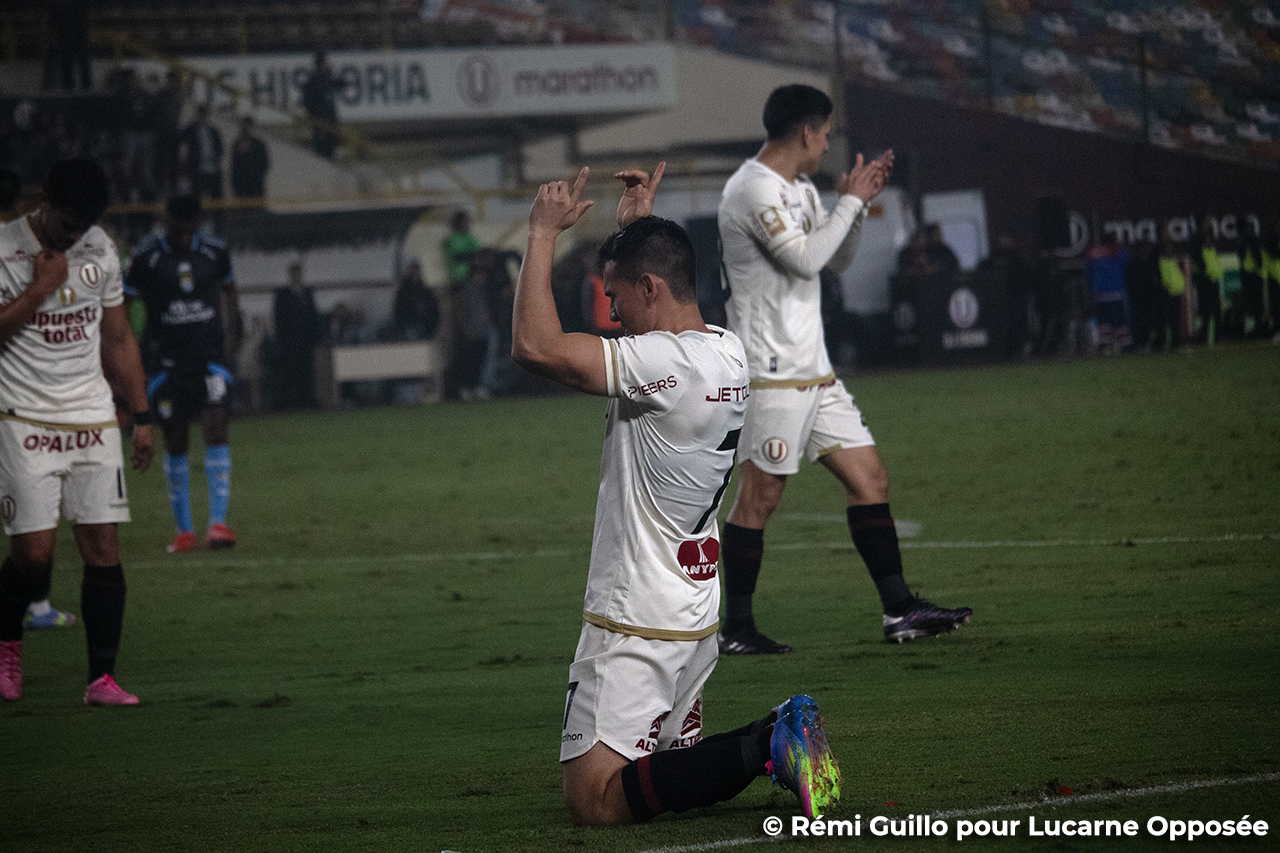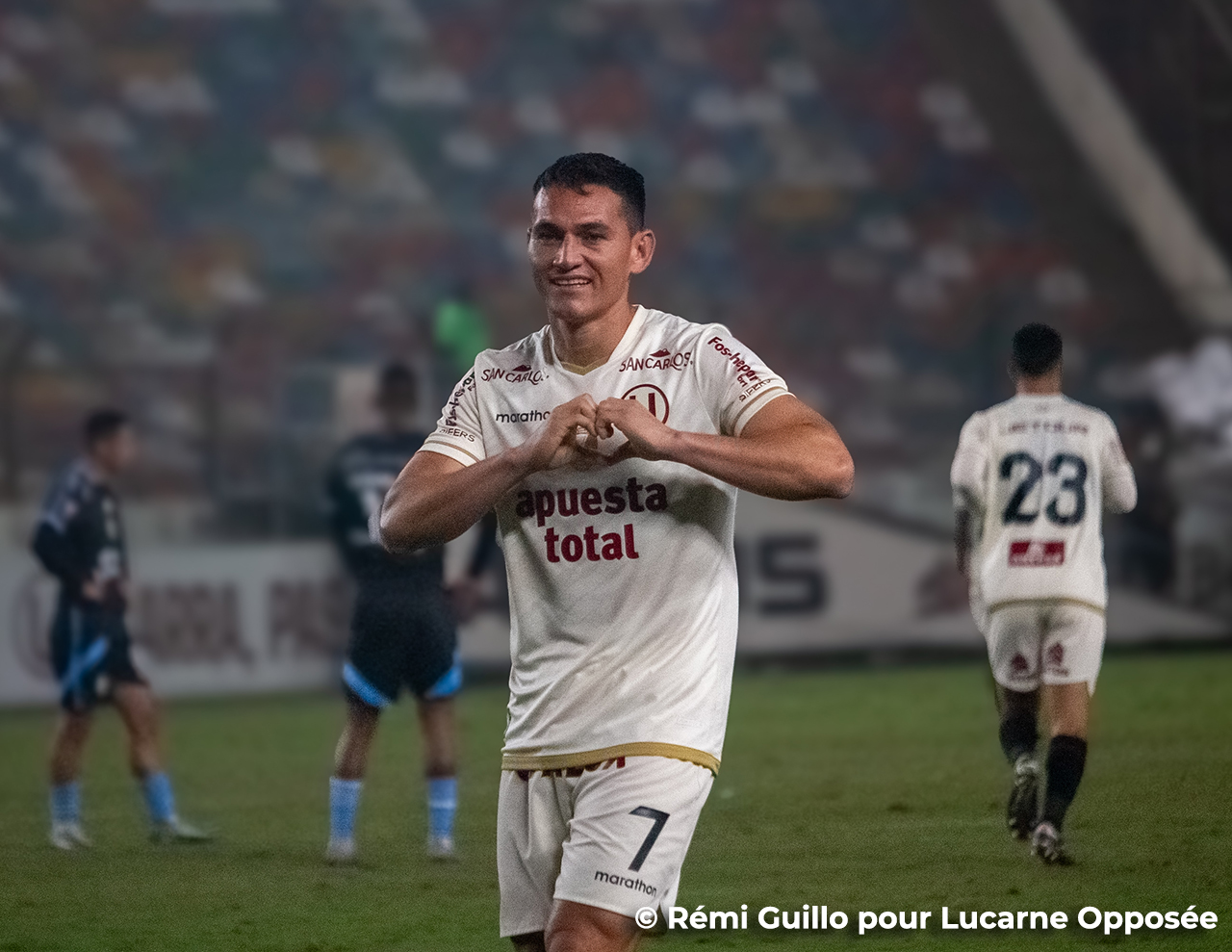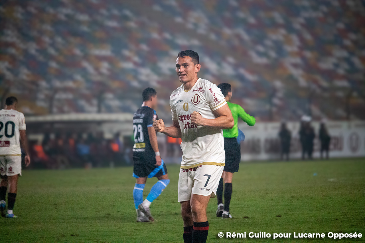 Nous avions laissé la Liga 1 aux mains d’Universitario, au lendemain d’un titre attendu depuis une décennie. Entre temps, l’artisan de ce succès, Jorge Fossati, s’en était allé prendre les commandes d’une sélection qui n’avance plus, Fabián Bustos avait pris le relai en s’offrant Apertura et Clausura, n’ayant ainsi pas même besoin d’une finale pour conserver la couronne de la U. Après un lent décollage, la U est revenue à ses habitudes, montant sur le podium de l’Apertura au soir de la sixième journée, s’emparant ensuite de la première place trois journées plus tard. Entre temps, les chaises musicales. Fabián Bustos s’en est allé, Jorge Fossati est revenu. Comme un retour vers le futur. Pourtant, le mois de mai a été des plus mouvementés. Si Universitario a réussi le coup parfait en Libertadores, sortant d’un groupe dans lequel les Cremas étaient annoncés victime expiatoire, surtout après les deux défaites en ouverture, les trois défaites de rang, ont perturbé un temps la belle mécanique. Avant que la machine se remette en marche. Le 3-1-4-2 fonctionne à merveille, le duo Álex Valera – Jairo Concha s’exprimant de la meilleure des manières, et Universitario étouffe une grande partie de ses adversaires. En témoigne l’écrasant 5-0 de la seizième journée passé à ADT au terme d’un match totalement maîtrisé et dominé de la tête et des épaules.