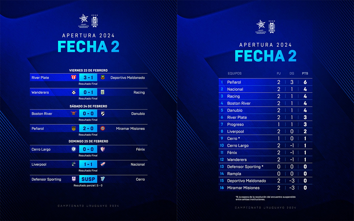 Peñarol continue de régaler avec une deuxième victoire en deux matchs et un grand Léo Fernández. Nacional et Liverpool se quittent sur un match nul logique, mais la journée reste marquée par les dernières minutes du dernier match, quand un arbitre assistant de Defensor – Cerro a reçu un projectile de la tribune.
