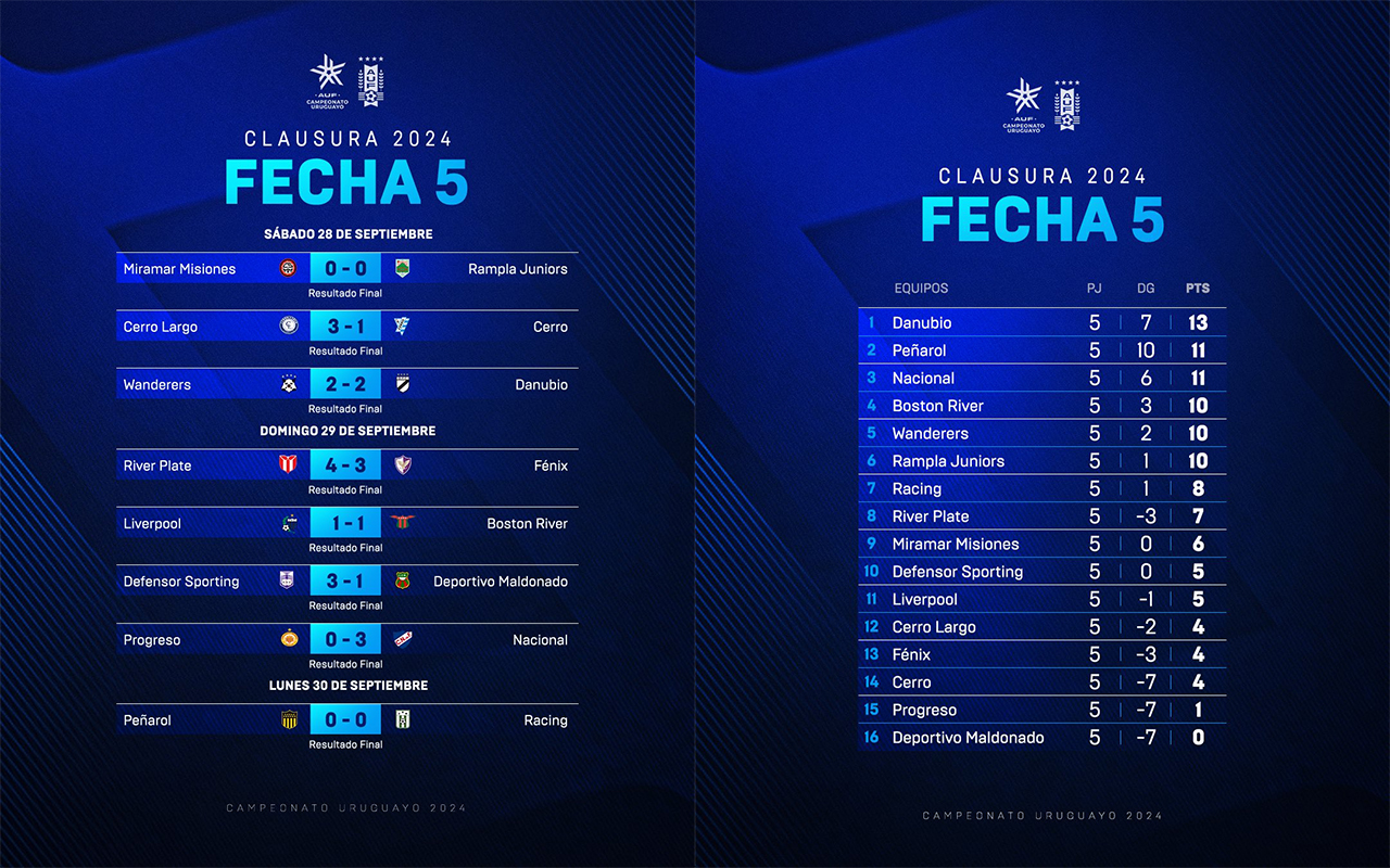 Danubio est l’équipe de ce début de Clausura avec, avant ce match contre Wanderers, une série de six victoires de rang, deux pour terminer l’Intermedio et quatre pour démarrer le tournoi de clôture. L’équipe du Turco Apud défend très bien et dispose de bons joueurs en attaque entre Maxi Cantera, Papelito Fernández ou Christian Tizón. Le déplacement au Parque Viera était l’occasion idéale pour continuer le chemin en tête du tournoi et espérer pouvoir jouer le titre lors de finales sachant que le classement annuel n’échappera pas à un des deux grands. Après une première mi-temps fermée, Danubio ouvre le score dès la première minute de la deuxième mi-temps sur un but contre son camp de Mario Risso. Le grand défenseur tacle sur un centre et trompe Jhonny Da Silva qui ne peut rien faire. Moins de dix minutes plus tard, Christian Tizón double la mise sur un bon centre de Lucas Sanseviero, bien parti en contre. La dernière demi-heure du match est une longue litanie d’opportunités manquées par Tizón (qui touche la barre) ou par les entrées. À la 90e, les commentateurs calculent que cela fait, quand même, sept victoires en sept matchs pour Danubio, l’équipe forte de cette deuxième partie de saison. On n’a pas trop vu l’attaque du Bohemio. Matias Fonseca a souvent pris les mauvaises décisions. En attaque, on retrouve désormais Nicolás Royón et le défenseur central Mario Risso, qui reste en pointe faire jouer sa taille. C’est lui qui réduit l’écart sur un ballon repoussé par Goicoechea à la 92e avant d’effectuer une passe décisive de la tête à la 93e pour Christian Franco qui n’a plus qu’à tromper Goicoechea, dont la défense a été trop statique sur les deux buts. Score final 2-2 et les deux équipes font donc du surplace.