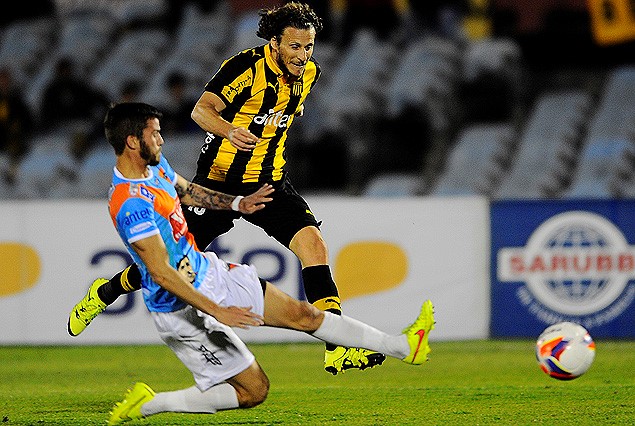 Il aura donc fallu cinq journées pour que Diego Forlán retrouve son niveau de jeu. Il aura aussi fallu une réorganisation du Peñarol, avec un 4-3-3 comprenant en attaque Zalayeta, Ifran et donc Forlán. Comme lors de la Copa America 2011 quand il avait Cavani et Suárez devant lui, Forlán n’est jamais aussi bon que quand il est chef d’orchestre. Ce n’est pas un joueur de football, c’est un logisticien. Il voit le jeu les yeux fermés, et ses corners et coups franc sont des livraisons de colis, livrés au bon endroit au bon moment. Lors des quatre premiers matchs, il avait été relégué sur le côté gauche. Mais il n’y était pas assez rapide pour faire la différence. Il a maintenant été replacé dans le cœur du jeu, pour frapper de loin, ou faire marquer ses collègues. Il a le choix, il sait faire les deux, et il fera les deux. Au-delà de la qualité des passes, il a une élégance rare dans le jeu, il ne commet pas de faute, il est toujours bien placé. Un régal.