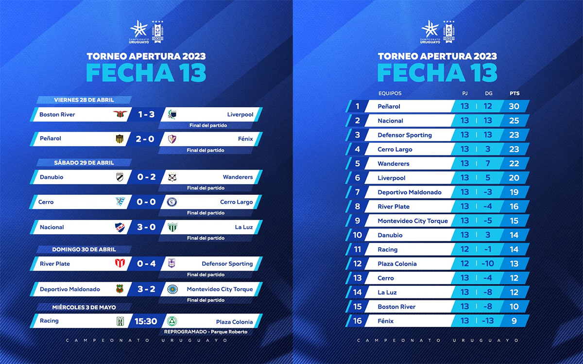 Après trois victoires, Peñarol conserve ses cinq points d’avance sur Nacional et n’est plus qu’à un match de célébrer le titre de l’Apertura. Mais le nuage du fiasco de la Sudamericana plane au-dessus du Campeón del Siglo. Derrière, Nacional enchaîne aussi les victoires et reste dans le coup sur tous les tableaux.