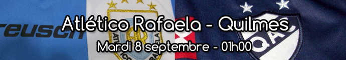 L'Atlético Rafaela de Federico Andrada reçoit une équipe de Quilmes qui affiche un bilan moyen à l'extérieur cette saison et qui vient de se faire éliminer en Copa cette semaine, les jambes devraient être lourdes. Match indécis.