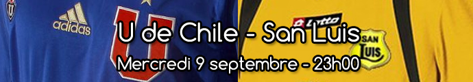 Universidad de Chile se doit de réagir après la piètre prestation fournit à l'aller (défaite 3-1) face à San Luis la lanterne rouge en championnat mais qui se transcende en Copa. L'attaque de la U est toujours menée par un Gustavo Canales fantastique mais on ne peut pas dire autant de la défense qui vient d'encaisser 7 buts en deux matchs. San Luis est à 90 minutes d'un exploit historique.
