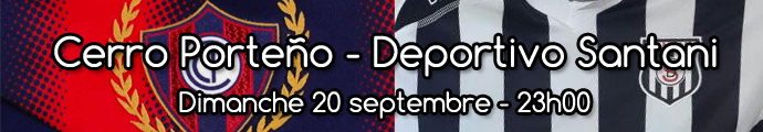 Occasion en or pour Cerro Porteño de prendre seul le fauteuil de leader. Forts de leur invincibilité qui suit toujours son cours (invaincu depuis le 9 juillet), ils seront sans aucun doute motivés à l'heure d'affronter une équipe malade comme le Deportivo Santani.