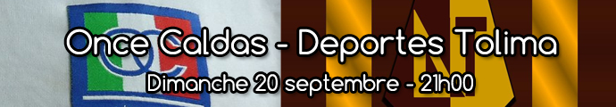 Once Caldas poursuit son petit bonhomme de chemin qui l'amène seulement à trois points de Santa Fe quatrième. S’il y a un joueur à observer ce soir c'est bien Johan Arango, vous ne serez pas déçus. Tolima de son côté a laissé une bonne impression cette semaine en Sudamericana, où ils se sont imposés 2-0 sur le terrain de Junior (voir Copa Sudamericana 2015 : place aux huitièmes !), une performance à rééditer ce soir
