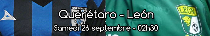 Le leader de la Liga MX se déplace chez une équipe de Querétaro qui va mal match après match, Léon a l'occasion de conforter son fauteuil de leader, il y aura bien évidemment beaucoup de buts comme souvent lors de leurs matchs. Spectacle garanti.