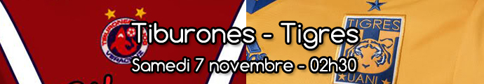 Voici une affiche qui se déroule dans le meilleur championnat des Amériques, je parle évidemment de la Liga MX. Les Tiburones Rojos de Veracruz (8e) peuvent dépasser leur adversaire du soir en cas de victoire et ainsi se replacer dans le haut de tableau. Mais la tâche ne s'annonce pas facile face aux Tigres de notre cher et tendre ami Gignac, qui voyagent pas trop mal ces temps-ci.