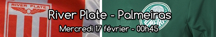 Début des phases de groupes de la Copa Libertadores. Première rencontre de ce groupe 2 avec un River Plate qui ce week-end a subi un coup d'arrêt en championnat avec cette lourde défaite 3-0 à domicile face au Nacional. Carrasco va-t-il préparer un coup tactique comme face à la U ? Quant à Palmeiras, ils sont en plein dans leur championnat Paulista et ça ne va pas fort (1 victoire en quatre rencontres).