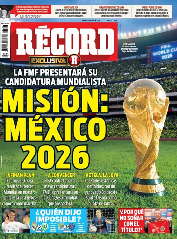 De María de poursuivre : « Je crois qu’organiser une Coupe du Monde est un rêve, c’en était un en 1970, c’en était un en 1986 et c’en est certainement un aujourd’hui. » S’appuyant sur l’expérience des deux précédentes Coupes du Monde organisées par le pays (et que vous pouvez revivre sur Une histoire mondiale), le Mexique aurait déjà préparé son plan, la liste des sites d’accueil étant quasiment close, la rénovation de certains stades actée comme l’évoque le quotidien Record dans son édition du jour. La mission Mexico 2026 est donc officiellement lancée, la candidature sera déposée lors du prochain congrès de la FIFA qui se tiendra à Mexico en mai prochain.