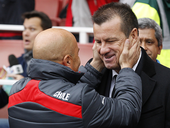 En octobre dernier, Dunga et Sampaoli s’étaient croisés lors des qualifications pour la Coupe du Monde à Santiago. A l’occasion du match opposant leurs deux sélections, les deux sélectionneurs avaient manifesté publiquement leur profond respect l’un pour l’autre. Les choses risquent d’avoir changé.