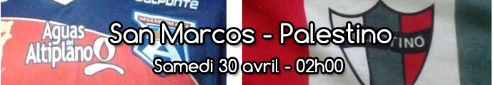 San Marcos joue sa survie, Palestino sa place en Sudamericana. Malheur au perdant donc.