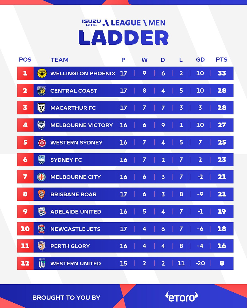 Du côté du Victory, la période n’est pas plus faste. Après quatre matchs nuls, tous sur le même score (1-1), lors des quatre journées précédentes, les hommes de Tony Popovic s’inclinent face à Macarthur et concèdent leur première défaite de la saison. L'absence de goal line technology en A-League Men a de nouveau fait l'objet d'une polémique après que Melbourne Victory s'est vu refuser l'égalisation. À noter que Filip Kurto a stoppé un pénalty de Bruno Fornaroli qui voit ainsi Stamatelopoulos le rejoindre au classement des meilleurs buteurs avec treize réalisations.