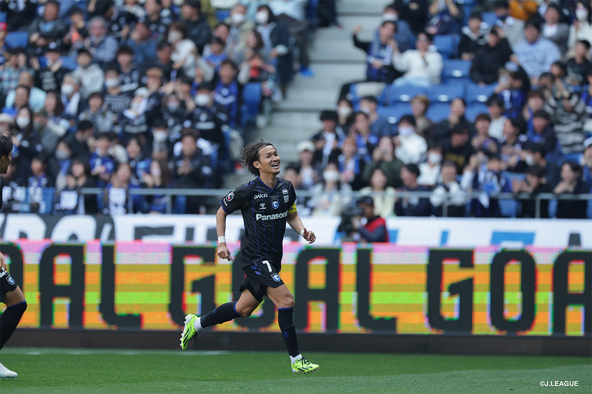 Seuls clubs avec le Sanfrecce Hiroshima et le Machida Zelvia à ne pas avoir perdu de match, les deux rivaux d’Osaka ont bien débuté leur saison. Cela tranche avec les années de galère que subit le Gamba Osaka depuis 2021 et l’extrême irrégularité du Cerezo Osaka. Pour cette quatrième journée, le Gamba recevait le promu Jubilo Iwata. Très fébrile défensivement la saison dernière, le club de la banlieue Nord d’Osaka alignait une charnière composée de Shinnosuke Nakatani et de Shota Fukuoka, titulaire en l’absence de Genta Miura. Avec un Takashi Usami en forme devant, le Gamba était favori. De son côté, Iwata ne changeait pas son onze par rapport à la semaine précédente, avec l’inusable Eiji Kawashima dans les cages et le meilleur buteur du championnat Ryo Germain en pointe. Après trois minutes de jeu, le Gamba mettait en place un fort pressing. Irréprochable depuis le début de saison, le latéral Ko Matsubara perdait le ballon dans sa surface, au duel avec Takeru Kishimoto. L’ailier décalait Takashi Usami, qui ne tremblait pas, inscrivant son troisième but en trois matchs. La première mi-temps voyait le Gamba se procurer les meilleures occasions, notamment un coup franc sur le poteau gauche d’Eiji Kawashima. Avant l’heure de jeu et après une grosse occasion emmenée par Welton, Takashi Usami s’excentrait. Le buteur se muait en passeur, d’un superbe centre sur la tête du milieu brésilien Dawhan. Le match s’emballait. Une minute plus tard, sur un contre, le latéral Atsushi Kurokawa passait proche d’inscrire le troisième but du club d’Osaka. Sur le contre qui suivait, Ryo Germain et Rikiya Uehara combinaient. Ce dernier décalait la balle à Ko Matsubara, qui centrait sur la tête de Ryo Germain. L’attaquant inscrivait son cinquième but de la saison, deux semaines après son quadruplé contre Frontale. Iwata continuait de pousser jusqu’à la dernière seconde, où une tête magnifique de Ryo Germain était stoppée par une envolée folle de Jun Ichimori. Le gardien du Gamba préservait les trois points.